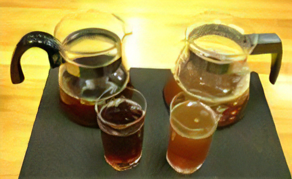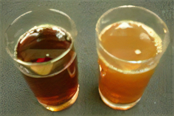 左側・二度ごしでだしたアイスティー(透明で白濁していない)