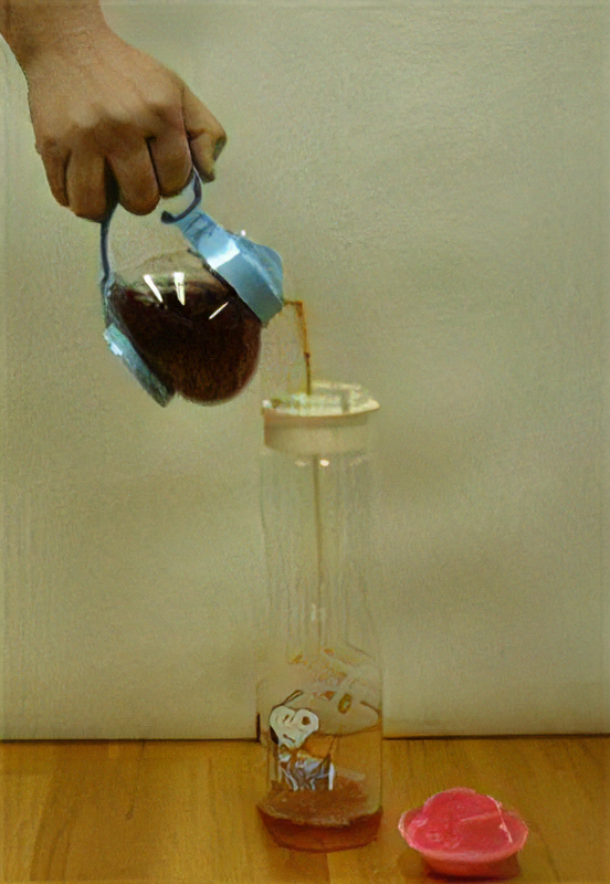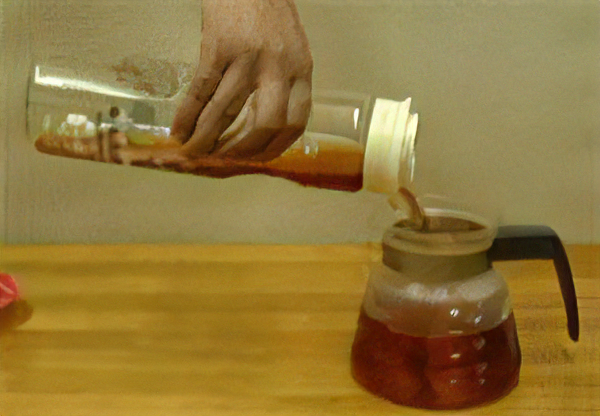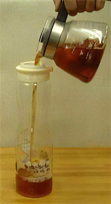 (写真・水筒からサーバーに紅茶を一気に注ぐ)