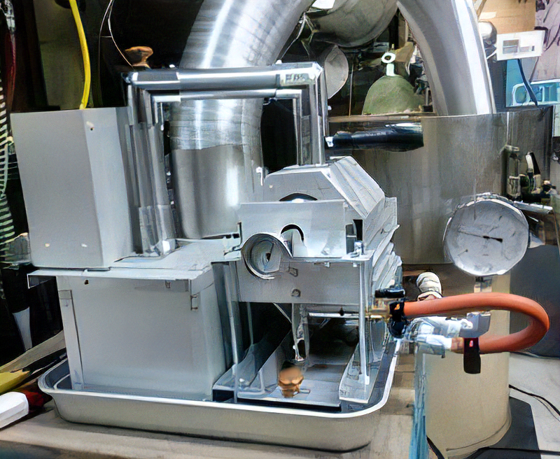 ダクト接続型焙煎機 今回の焙煎機の特長はダクトを接続することです。つまり、室外に