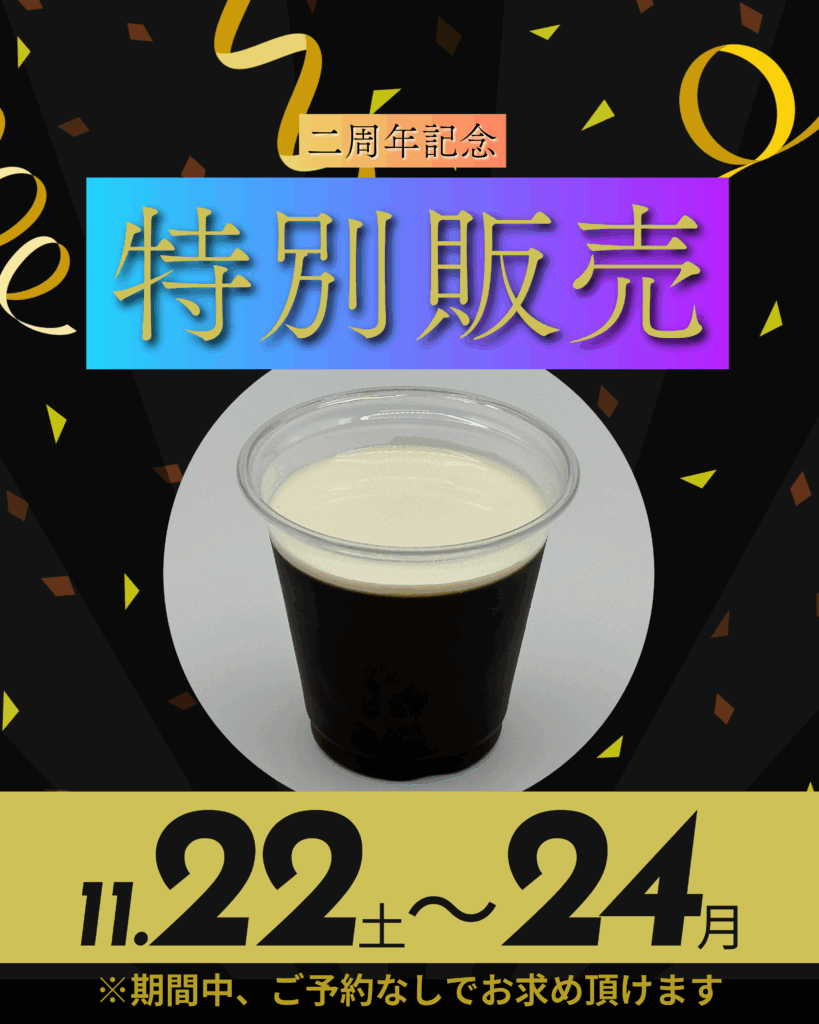 11/22(土)~11/24(月)までの2周年記念イベント中、珈琲屋の本気ゼリーを特別販売致します。