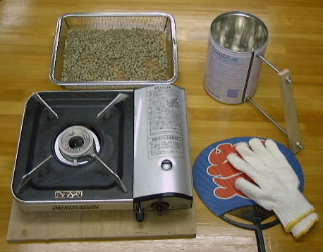 - ステンレスのザル・・・煎り上がりのコーヒーは200度ぐらいあります。 ですから金属のものを使って下さい。広めのザルの方がハンドピックしやすいと思います。
