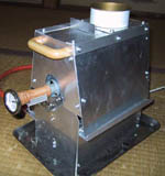 お盆に「O」さんが持ち込んだフィスコの焙煎機です。 今回は、微圧計とバーナーの高さ切り替え装置をいっきにつけてみました。 なんせ、西尾市から大宮市までは、めちゃめちゃ遠いので あまり遅い時間までかけてつくるわけにはいきません。 そこで、「O」さんに手伝っていただいて この大改造のわりには3時間ぐらいで終わってしまいました。 (もう、家庭用のおもちゃとは言わせない!)