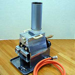 バーナーに点火してみました。はっきり言って、不安定な炎だしガスを全開にすると 不完全燃焼になっちゃうしやっぱりだめかなぁと思いました。 それでも、一番安定した炎にして適当な温度になるのを待ちました。 そして、豆を専用のじょうごて投入しておき、排気を絞り気味にしてみました。 この状態で豆投入口から水蒸気がでれば蒸らしはうまくいくのです。 そして、排気を開けていったときに豆投入口からでていた水蒸気が止まれば 排気能力は大丈夫なんです。(ぼくは、業務用の焙煎機だってこんな感じて判断しています) 実際に試してみたら、この煙突による自然排気の性能がめちゃくちゃいいのです。 この段階でぜったいにうまいコーヒーができると確信しました。