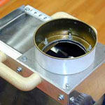 今回の改造では、以前ミルク缶焙煎機の改造で使ったノウハウを 多用しようと思いました。軸受け部分やスプーン兼温度計などは ミルク缶焙煎機と同じようにつくればいいので簡単だと思いました。 今回、始めての試みとしては排気を強制排気(モーターによる排気)を 使わず煙突による自然排気を使ってみようと思いました。 簡単に言うと煙突の根元にダンパーを付けるだけなんですけどね。