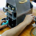 温度計が、140度ぐらいになったらスプーンをぬいて じょうごを投入口にセットします。