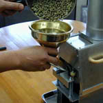 あわてずに、確実にざるにコーヒー豆を移します。 (別にそんなにあわてなくても良い)