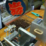 ちなみに、焙煎の基本は火力でコーヒーを作り排気で味をつくるです。 これは、強い火力を使っても弱い火力を使ってもコーヒーは出来ます。 しかし、決まった化学変化のプロセスをおこなうのには、時間というものが 大切になります。このええころを見つける事がまず第一。 そして、成分を過不足なく化学変化させるの大切なのが排気なんです。 コーヒーの成分を飛ばす飛ばさない火をコーヒー豆の芯までいれる いれないを決めるのがこの排気の調節なんです。