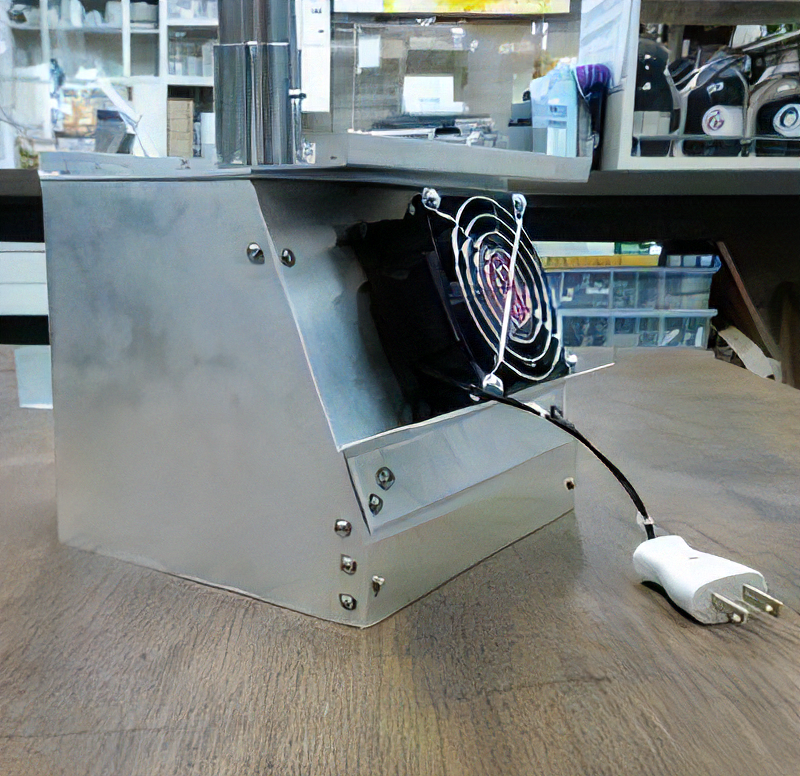 箱の後部にななめにつけられたファンで吸引する構造です。