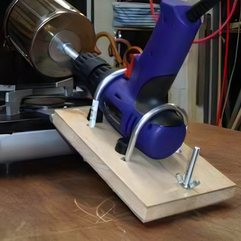 そのドリルをU字ボルトを使って板に固定しています
