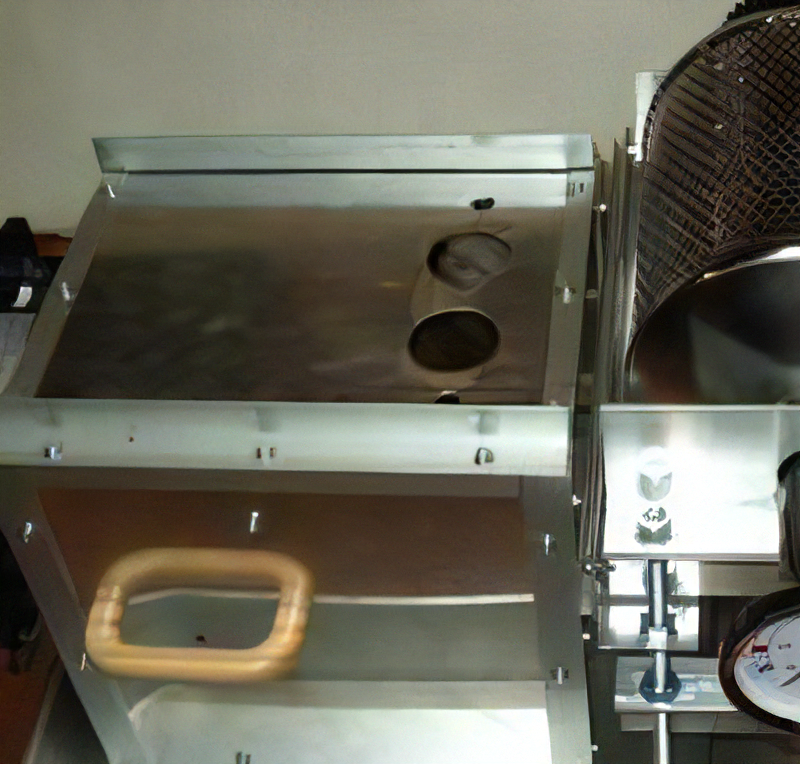 焙煎機の灰皿・・・前回の機械はガスの配管をベースのアングルに取り付けたために灰皿を取り付けることができませんでした