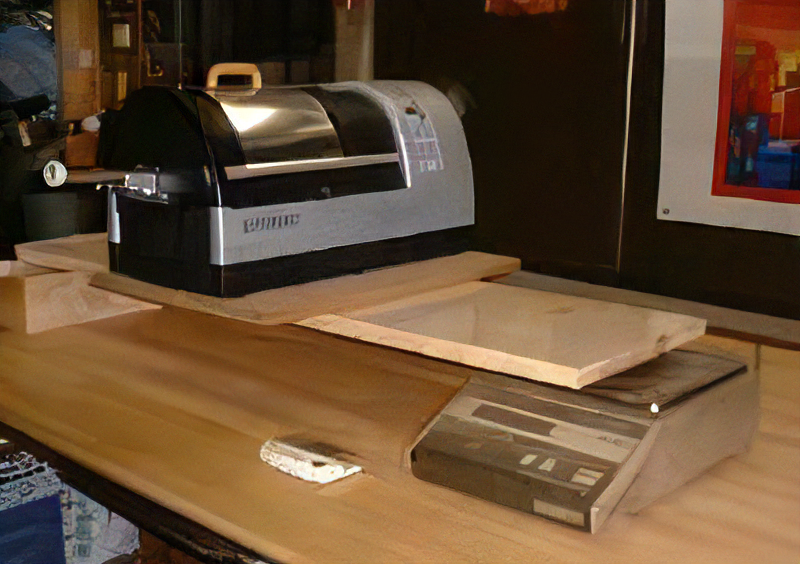 この方法は、おもりを使わず支点を外側に持っていってはかりを反対側の端にセットして 焙煎機を板の真中に持っていくことにしました。