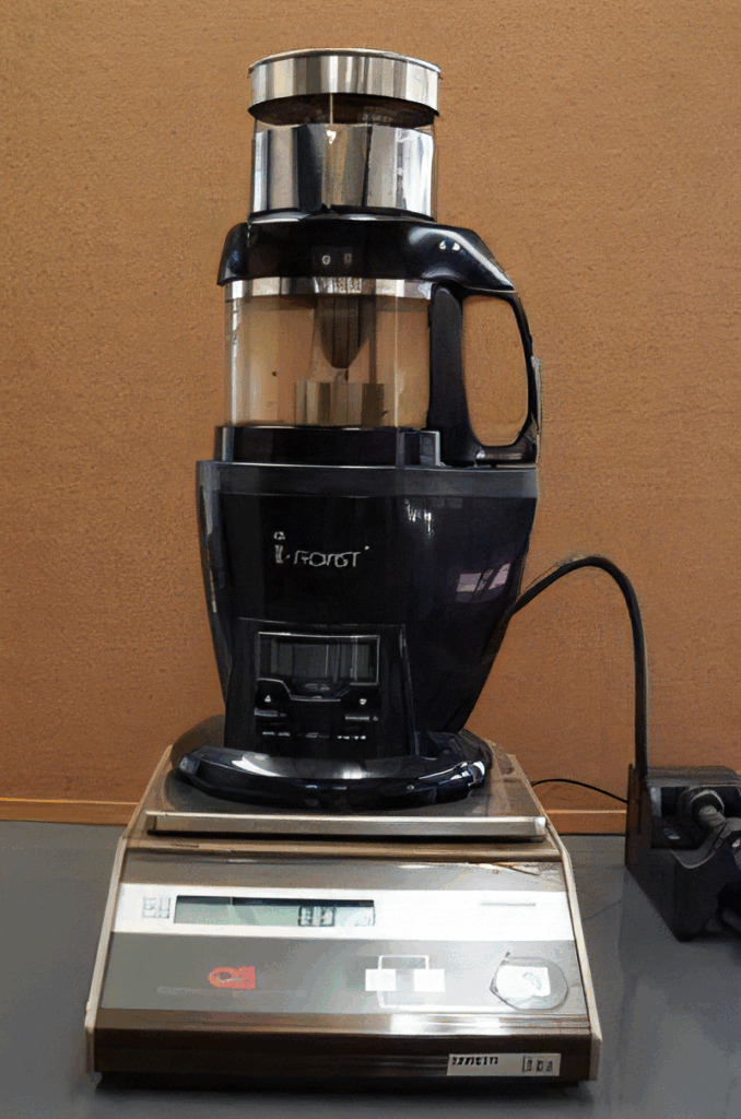 この焙煎機は、重さが2.1kgしかないのでMax5kgで精度が0.2g単位のはかりにのせて焙煎することができます