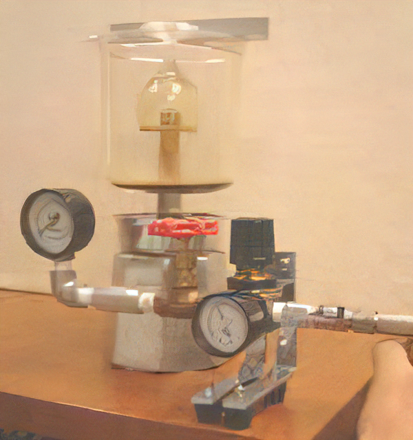 今回、圧力と泡のでかたを調べるためにエスプレッソに エアーがはいるところにレギュレーター(減圧弁)をとりつけて 入力の空気圧を自在に変化させることができるようにしました。