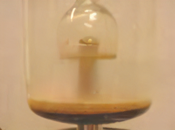 この装置でボイラーの圧力を上げる方法として ぼくがやったのは、一回ひいたコーヒーをもう一度 ミルにかけたことと、円形ロシをコーヒーの上と下に一枚ずつ ひいたことです。