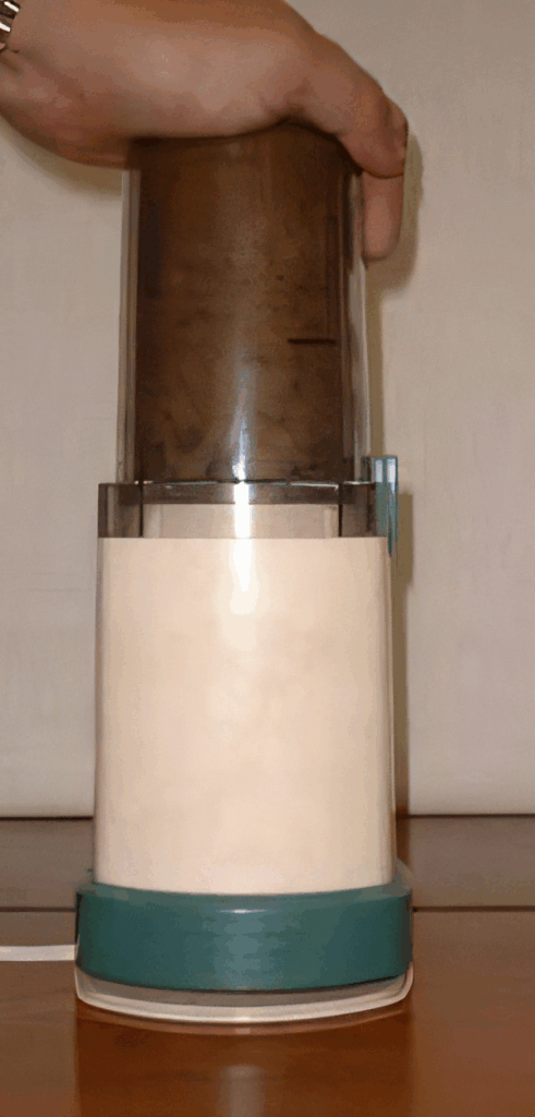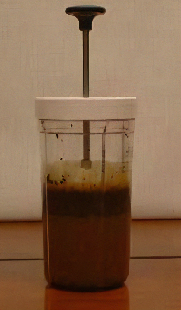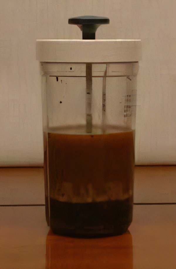 (写真・プレス部分を押し下げてろ過した状態)