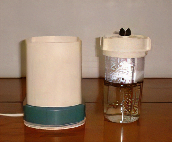 (写真左・ミルサーに容器をセットした状態)