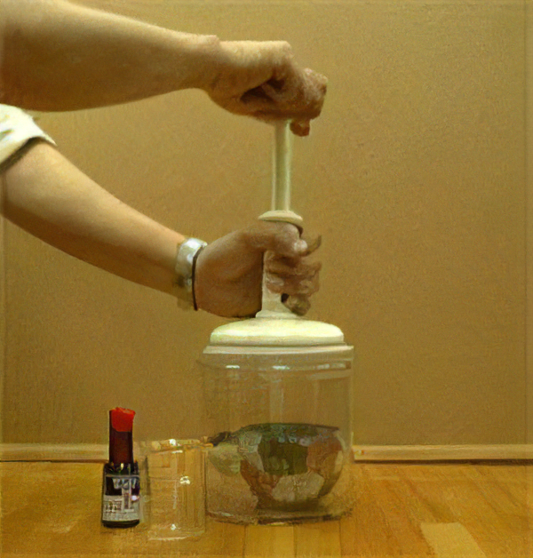 (写真・カップを入れて真空にしている)