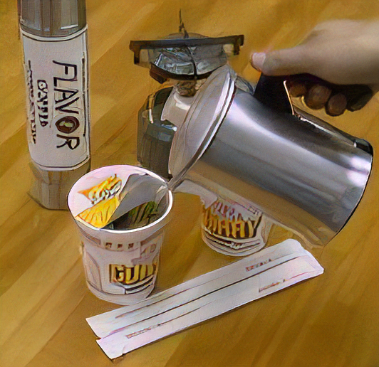 「寒い日に、渓流釣りにいくでしょ。 釣りにきたんだから、めしは簡単にすませたいんですよ。 そんな時、重宝するのがカップラーメンなんですね。