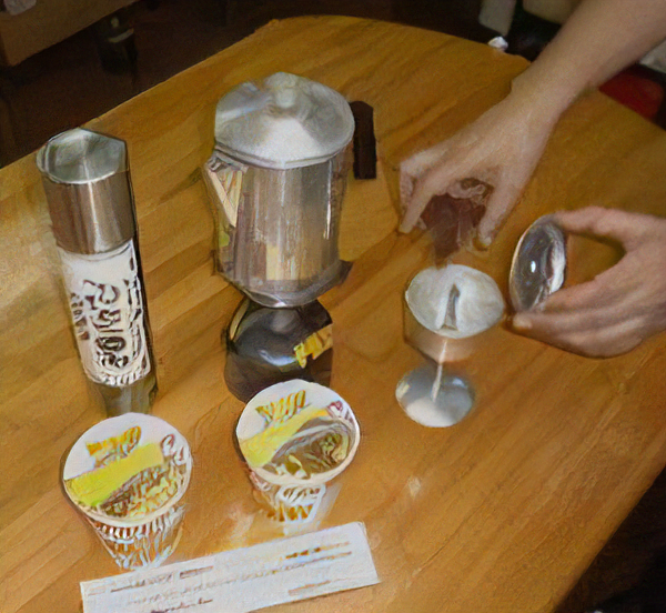 (写真はカップラーメンの蓋をあけてパーコレーター本体でお湯を沸かしている図)