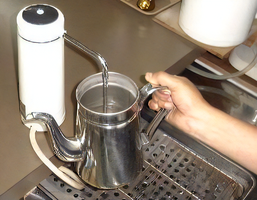 ここでは、手軽に紅茶をだすためにティーポット一杯分のお湯を沸かします。