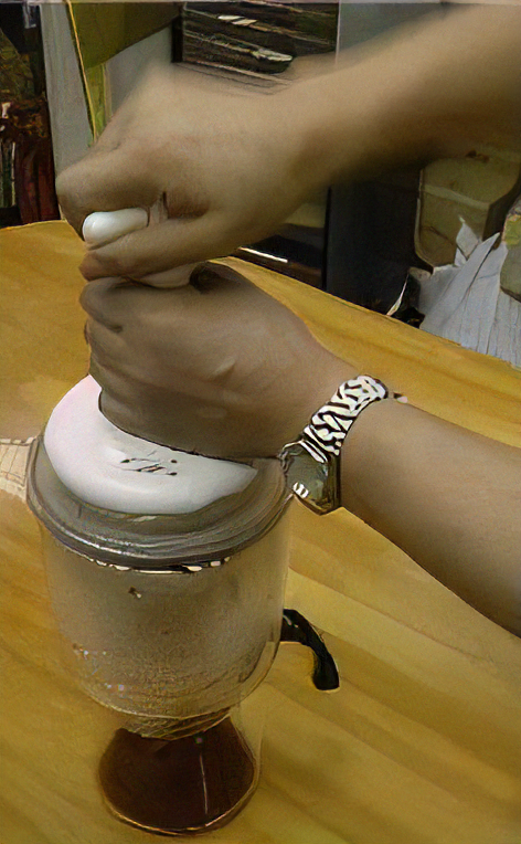 ふくらんでいたコーヒーはみごとにしぼみます。