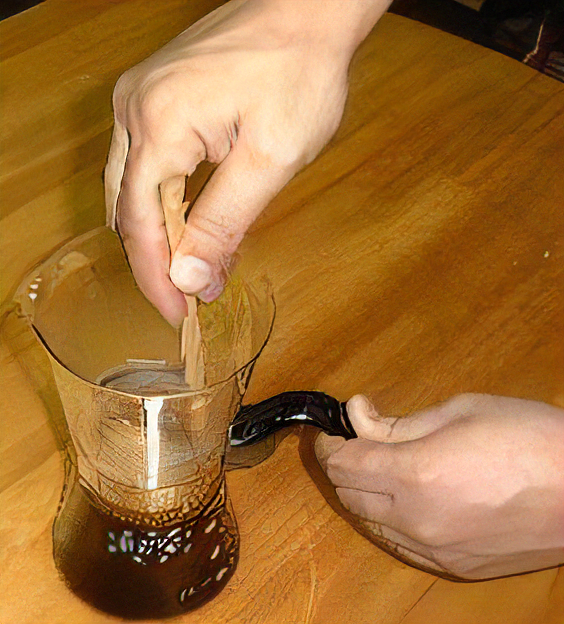 甘みをつける場合は、濃くてあたたかいコーヒー原液に砂糖を好みの量だけいれます。