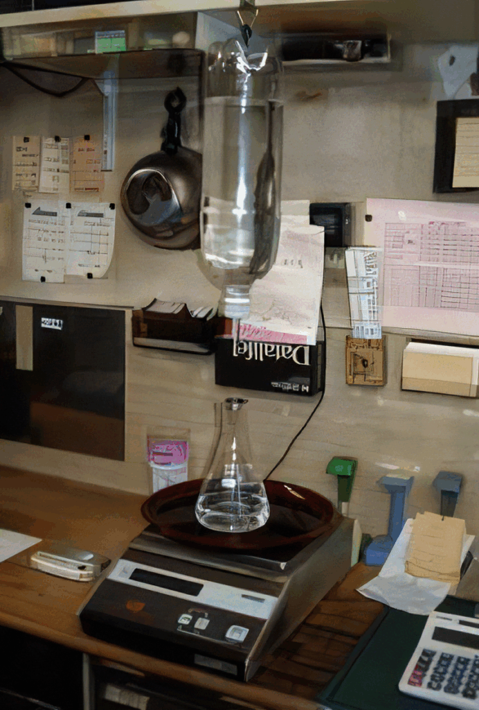 決まった水位まで水を入れておき一時間後に何グラムの水か落ちているかを調べるだけ・・・