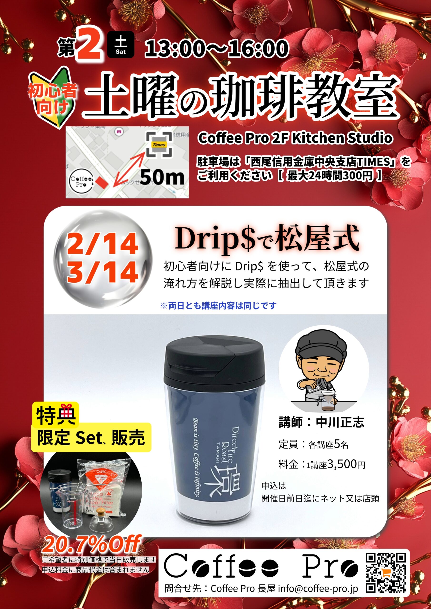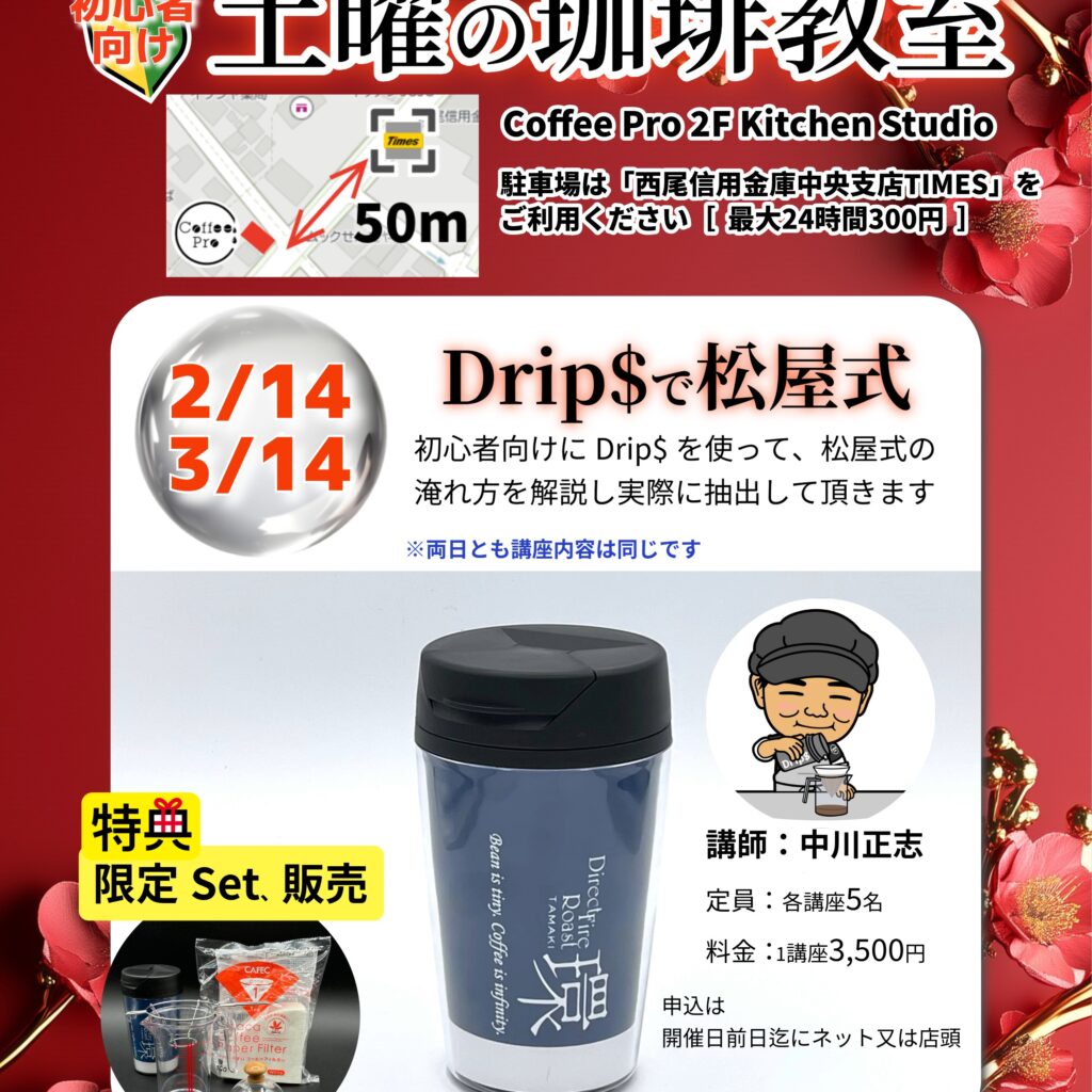 3月土曜の珈琲教室は、ホワイトデーの3/14(土)となります。 2月土曜の珈琲教