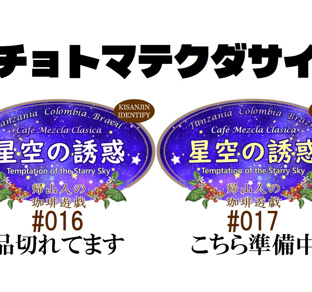 ただいま定番ブレンド「星空の誘惑」は品切れています。#016は完売しました。次の