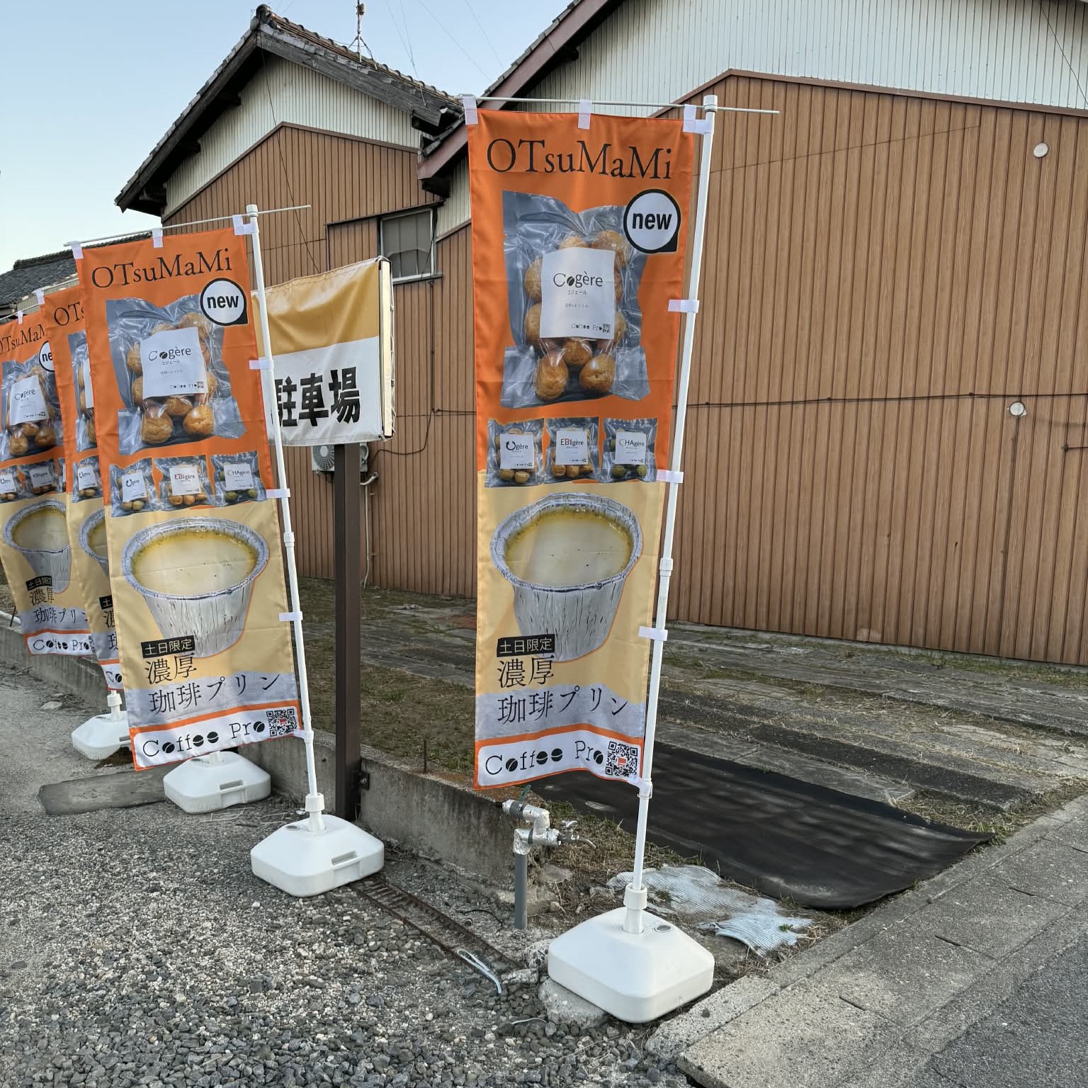 こんばんは。。 【土日限定】濃厚珈琲プリンですが、目下、のぼりを立てたりと絶賛、
