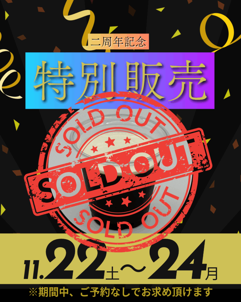 こんにちは。。 本日11/24(月)、2周年記念感謝セール最終日でございます!