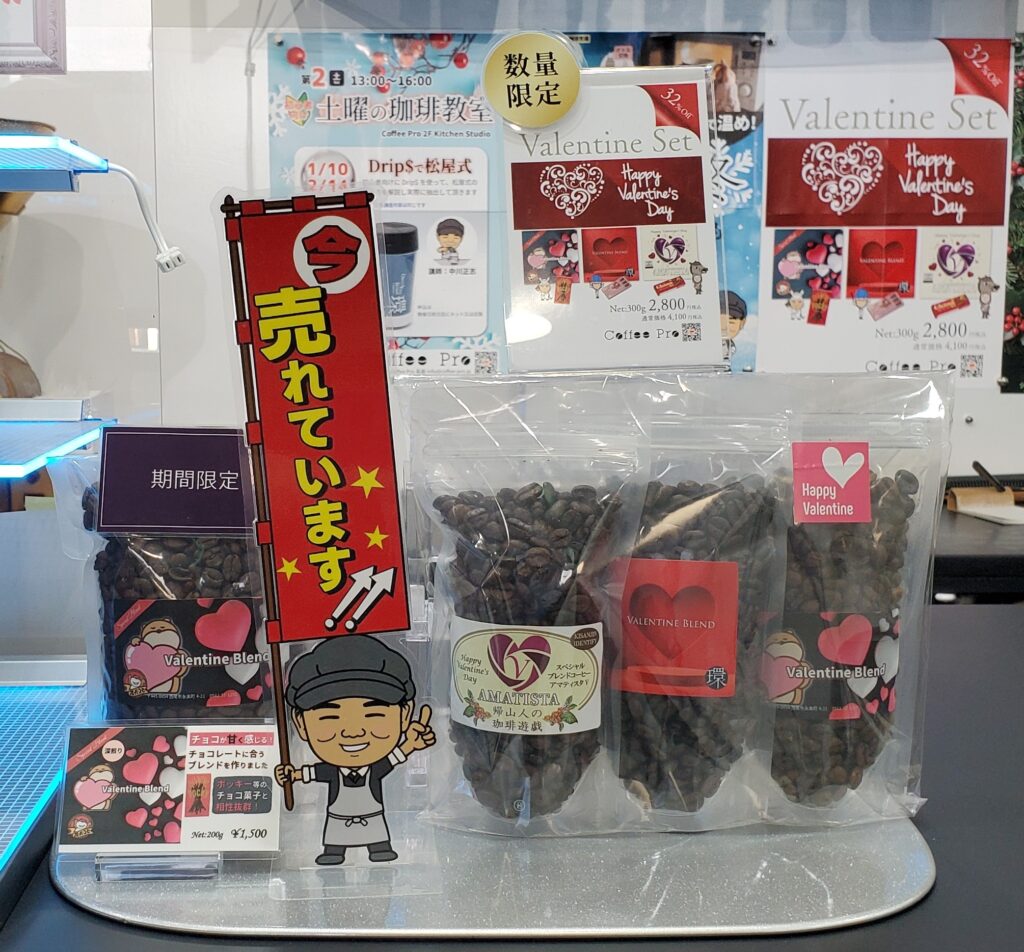 明日1/9(金)から1/12(月)迄、試飲の珈琲をフレーバーのValentineBlendに致します。
