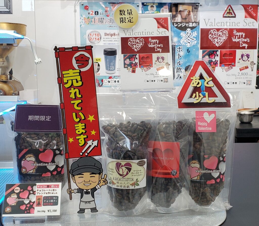 只今、店頭ではフレーバーのValentine BlendをPOCKYと共に試飲でお出ししております。