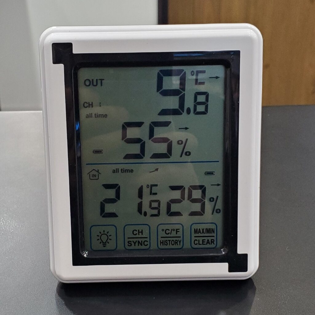 気温の基準は、以下の「店頭で外気を計測している温度計」です。