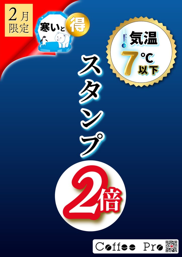 2月限定!気温7℃以下、スタンプ2倍キャンペーン